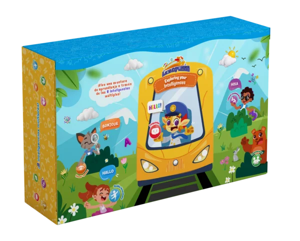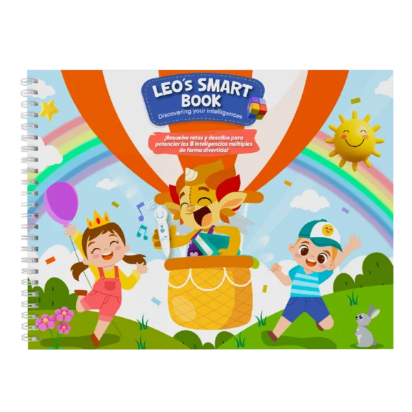 Libro 100% interactivo bilingüe que promueve el desarrollo de las 8 inteligencias múltiples mediante preguntas, juegos y desafíos relacionados con el entorno cercano del niño.