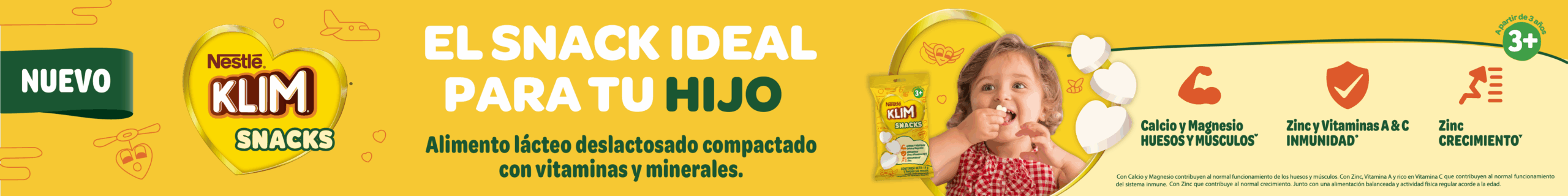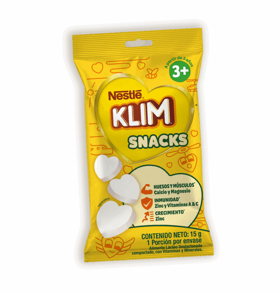 KLIM® SNACKS no reemplaza la leche materna. Es un alimento lácteo para niños a partir de 3 años que puede ser usado como snack entre comidas